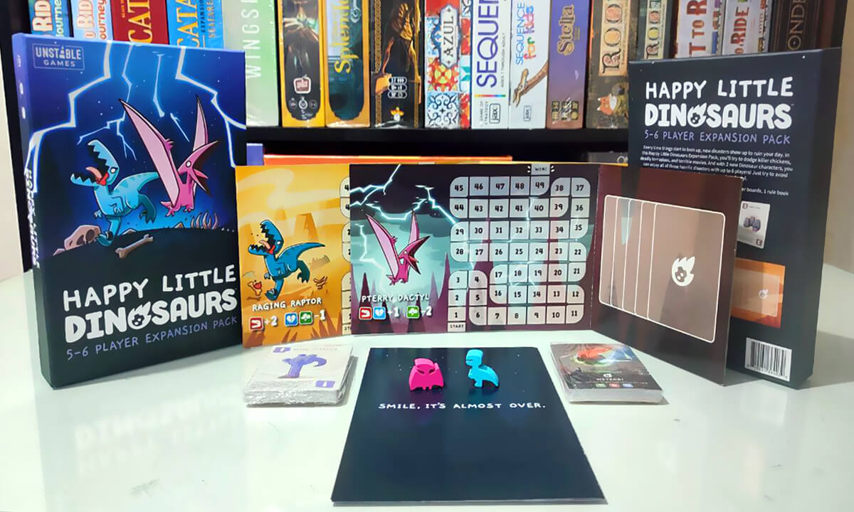 En Happy Little Dinosaurs te conviertes en un dinosaurio que intenta sobrevivir a la vida… y a sus “pequeños” desastres: meteoritos, lava, rupturas sentimentales y demás catástrofes cómicas que la naturaleza (y tus amigos) le lanzan encima. Cada ronda revela una carta de desastre que debes esquivar jugándola con astucia usando tus cartas de puntuación, instantáneas o efectos especiales. Gana quien primero logre 50 puntos o quien sea el último dinosaurio vivo. La mecánica es ágil, divertida, con tensión divertida y toque de humor, ideal para grupos que buscan diversión ligera, interacción y risas sin complicarse demasiado. Los jugadores deben equilibrar riesgo y seguridad, decidir cuándo aprovechar efecto y cuándo curarse de desastre. Un juego que combina cartas, efectos y supervivencia en un contexto prehistórico desenfadado.
