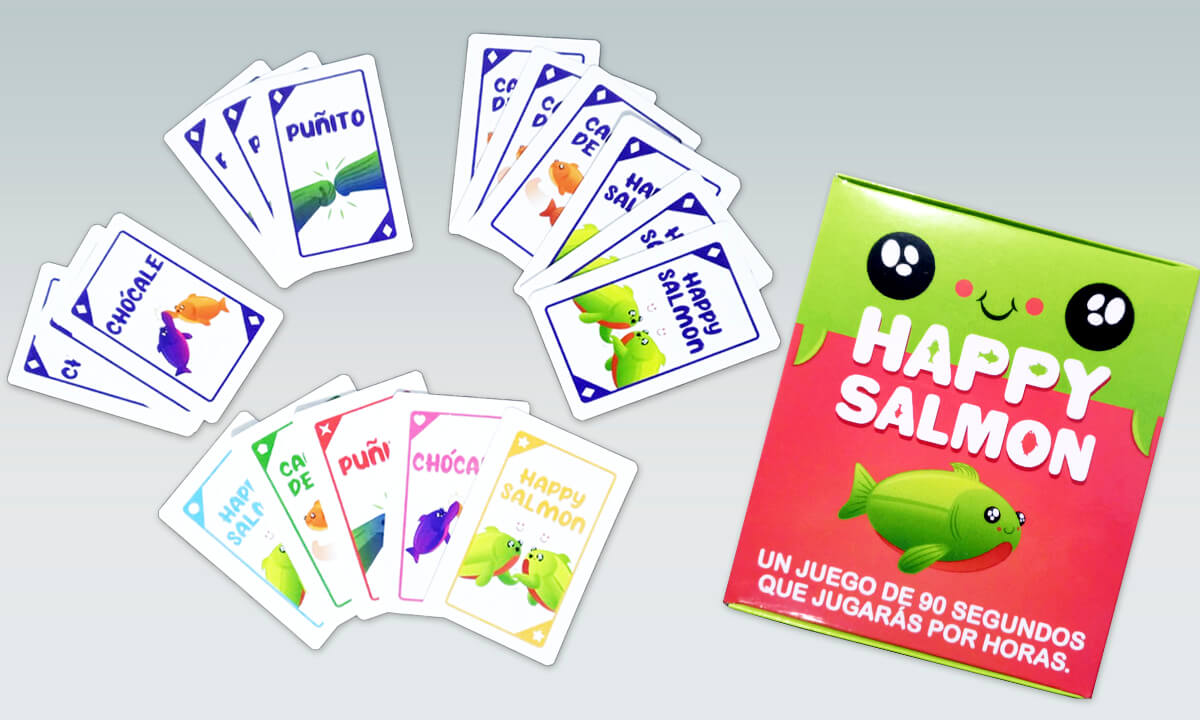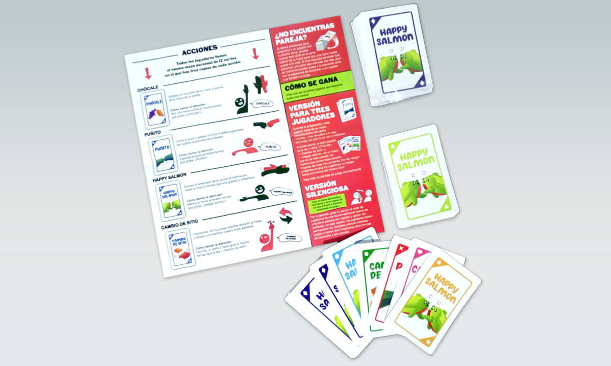 Happy Salmon es un juego de mesa perfecto para animar cualquier fiesta. Con mecánicas sencillas y rápidas, los jugadores se enfrentan en emocionantes y divertidos desafíos. Agita, golpea, da palmadas y enrosca tus brazos en una competencia caótica llena de risas y diversión. ¡Happy Salmon es la opción ideal para pasar un rato inolvidable con amigos y familiares!