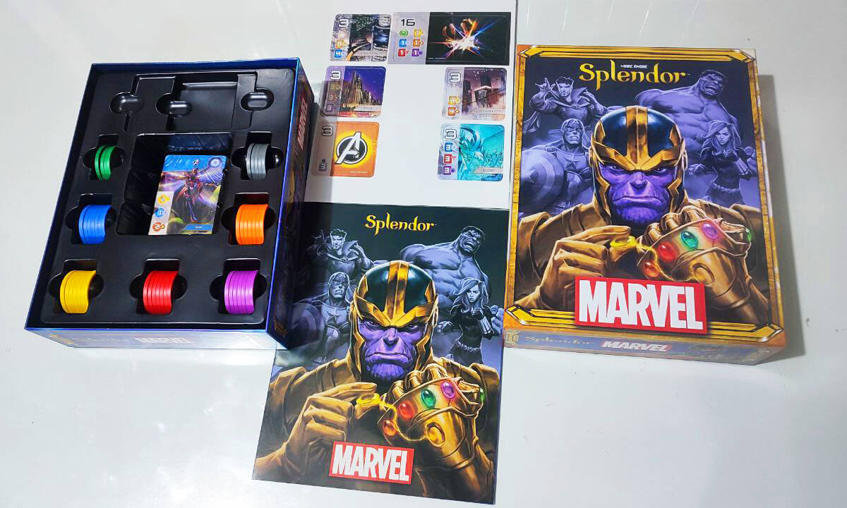 En Splendor: Marvel, los jugadores compiten en una carrera galáctica para reunir las gemas del infinito, reclutar personajes icónicos del universo Marvel y acumular puntos de infinito hasta activar el Guantelete. Mediante fichas (gemas) y cartas de héroes/villanos, cada jugador construye un motor de juego: fichas para comprar cartas, cartas que ofrecen bonificaciones y puntos, y ubicaciones estratégicas para maximizar su poder. Las condiciones de victoria están ajustadas a esta nueva ambientación: reunir suficiente fuerza o activar el Guantelete antes que los rivales. Con reglas accesibles para quienes ya conocen el juego original Splendor, Splendor: Marvel añade temática de superhéroes, decisiones tácticas rápidas y una duración breve que lo hace ideal tanto para jugadores casuales como para fans de Marvel que buscan una experiencia estratégica ligera pero satisfactoria.