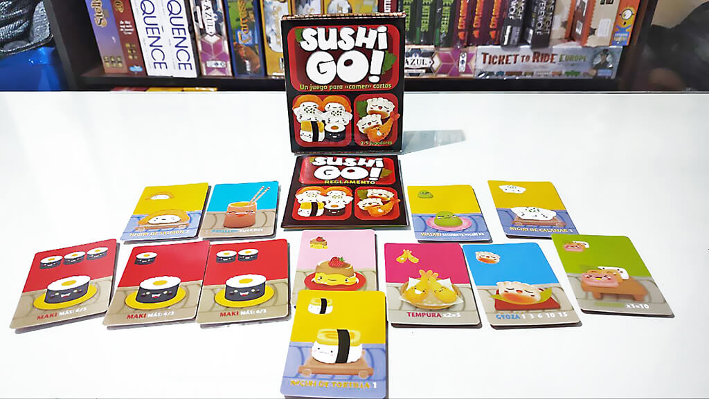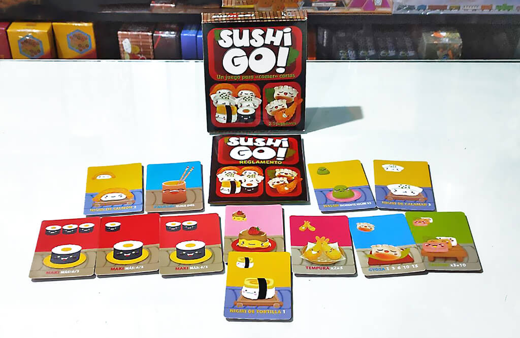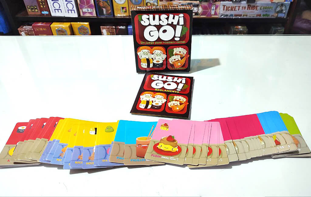Sushi Go es un juego de cartas en el que tienes que intentar comer tu comida favorita: sushi. Combina las cartas de la mejor forma posible y consigue más puntos que los demás. Pero, esto no es tan fácil porque… ¡las cartas pasarán de una persona a otra!