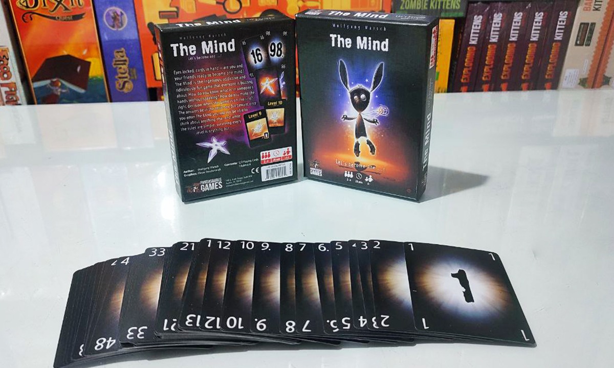 En The Mind los jugadores trabajan juntos como un solo equipo en una misión sin palabras: deben jugar cartas numeradas del 1 al 100 en orden ascendente, sin comunicarse entre sí. Cada ronda incrementa la dificultad: al inicio del nivel 1 cada jugador recibe una carta, luego dos, luego tres… mientras que aumentan las probabilidades de error, la tensión crece. Hay vidas y estrellas ninja que permiten “resetear” en momentos críticos. El reto es simple en reglas pero sorprendentemente profundo en sensación: se trata de leer el ritmo del otro, percibir silencios, otro segundo… y jugar en el momento exacto. El triunfo del equipo es una sincronía casi telepática. Es una experiencia breve (unos ~20 minutos) pero intensa, llena de adrenalina cooperativa y conexión.